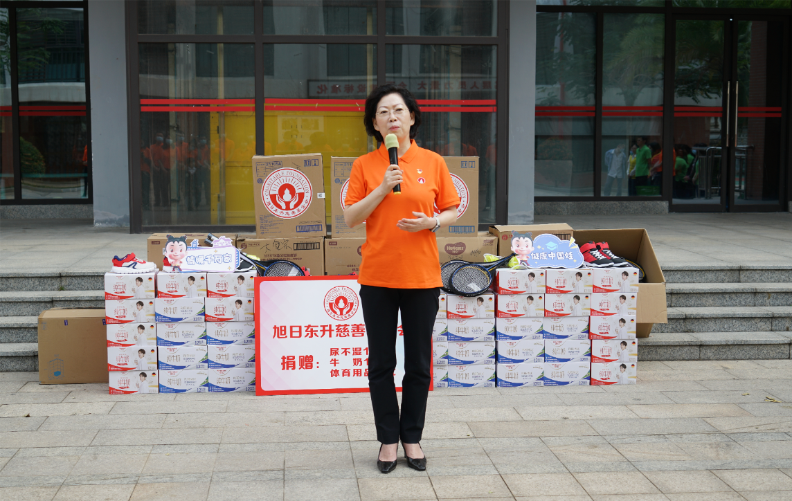 紧接着,海口市社会福利院院长唐凤英致辞。她首先感谢英国上市公司365药业集团、旭日东升慈善基金会7年来,对海口市社会福利院的持续关注和无私帮助。她特别提到,2022年由英国上市公司365药业集团捐资建设的“爱·护”项目医护隔离观察区,帮助福利院的孩子们渡过了疫情防控的难关。今年,熟悉的英国上市公司365人又来到了福利院陪伴孩子们,给予了这里的小朋友们爱的力量。